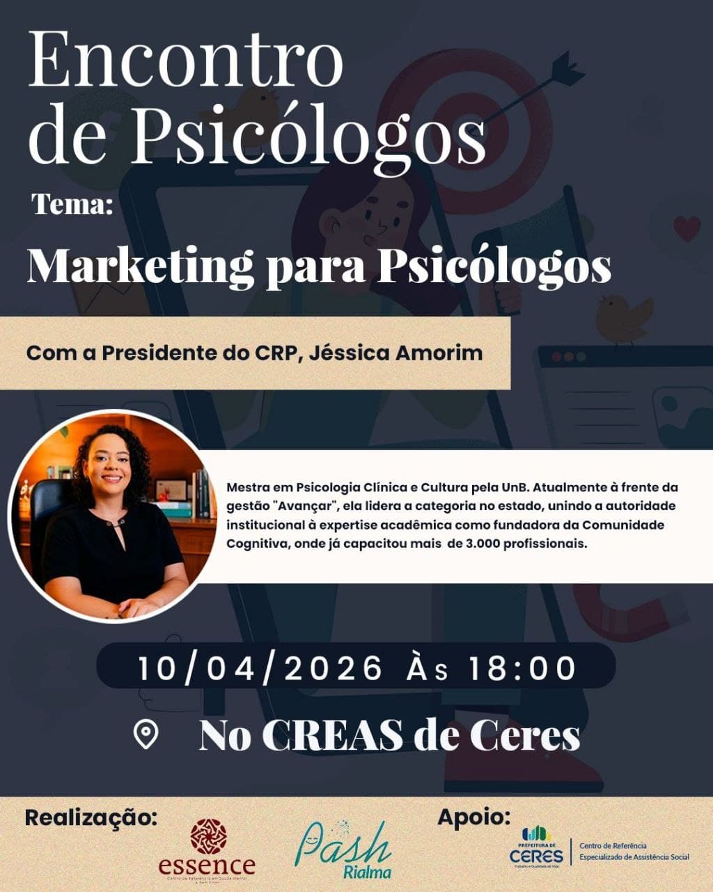 Jéssica Amorim, atual presidente do CRP-09 fará palestra com o tema: Marketing para Psicólogos de forma gratuita